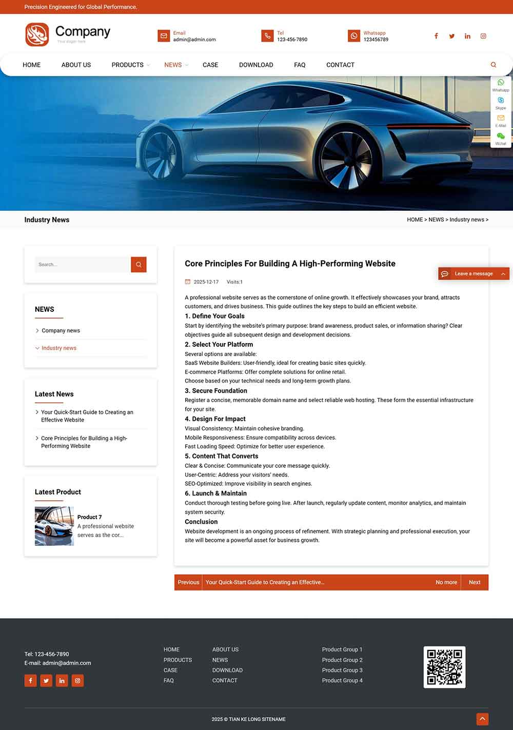 外贸企业公司展示型英文网站模板,后台程序使用MIT开源协议的迅睿CMS建站版/大众版 V4.7.1制作,未修改官方核心文件,可随意同步官方升级。前端为自适应布局,PC及手机端有外贸常用的社交软件,基本上所有前端内容都可以通过后台修改。